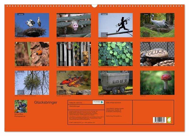 QUALITÄT - Hochwertiger Fotokalender mit 12 wunderschönen Motiven auf lichtbeständigem Bilderdruckpapier, robuste Spiralbindung mit Aufhängebügel.NACHHALTIG - deutliche Abfallreduzierung durch bedarfsgerechte Einzelstückfertigung, umweltfreundliches FSC-zertifiziertes Papier, Produktion in Deutschland, klimabewusste Logistik.PERFEKTES GESCHENK - Kalender für Freunde und Familie, für Kinder und Erwachsene, jung und alt, zu Weihnachten, Geburtstag oder zwischendurch.VIELFALT - Bildkalender in verschiedenen Formaten, z.B. DIN A5, DIN A4, DIN A3 sowie DIN A2. Ob Naturmotiv, Gemälde oder Fotos, ideal für ein persönliches Wohlfühlambiente.12 verschiedene Glücksbringer begleiten Sie durch das Jahr von Autor(in): Martina Berg