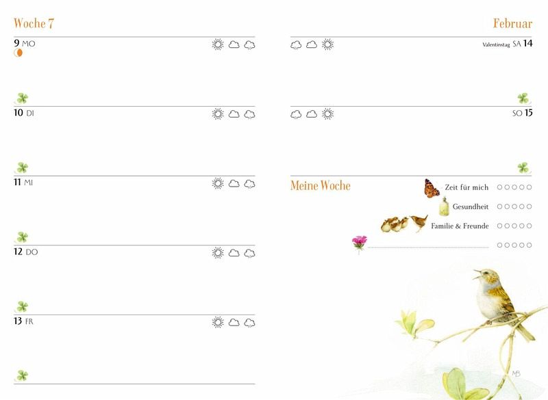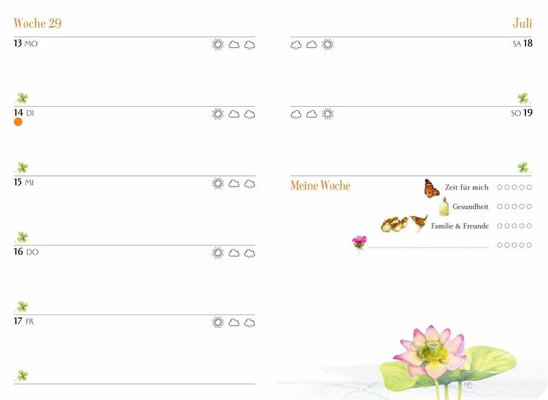 Dieser hochwertige GlücksKalender ist mehr als nur ein Wochenplaner - hier können die schönen Erlebnisse des Alltags festgehalten werden und einzigartige Illustrationen der Künstlerin Marjolein Bastin begleiten durch das ganze Jahr. Auf einer liebevoll gestalteten Doppelseite pro Woche finden neben den Terminen auch noch die aktuelle Stimmung und der Glücksmoment des Tages Platz. Das Kalendarium wird durch Feiertage, Mondphasen und Sternzeichen ergänzt und machen diesen GlücksKalender zum perfekten Begleiter für das Jahr 2026.