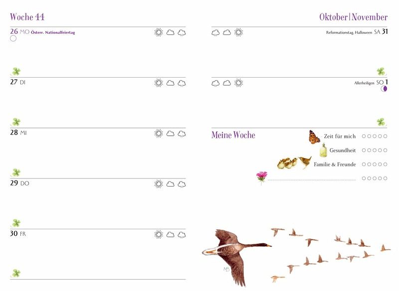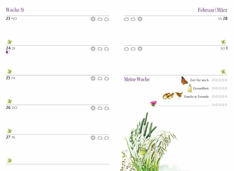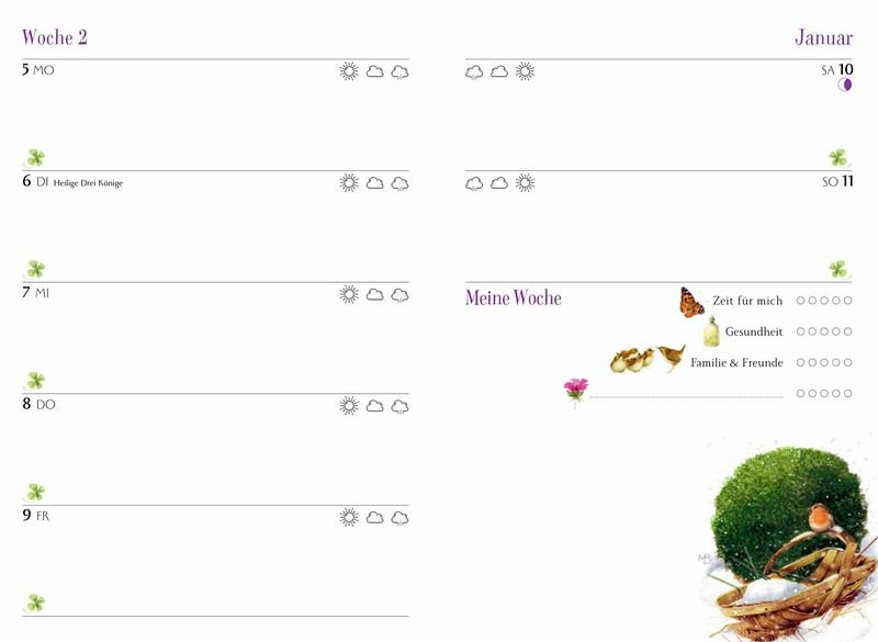 Dieser hochwertige GlücksKalender ist mehr als nur ein Wochenplaner - hier können die schönen Erlebnisse des Alltags festgehalten werden und einzigartige Illustrationen der Künstlerin Marjolein Bastin begleiten durch das ganze Jahr. Auf einer liebevoll gestalteten Doppelseite pro Woche finden neben den Terminen auch noch die aktuelle Stimmung und der Glücksmoment des Tages Platz. Das Kalendarium wird durch Feiertage, Mondphasen und Sternzeichen ergänzt und machen diesen GlücksKalender zum perfekten Begleiter für das Jahr 2026.