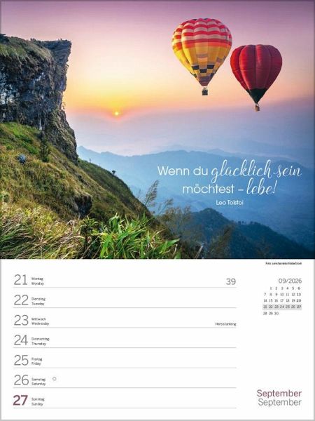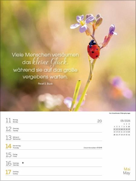 - Format: 24 x 32 cm; Wochenkalender mit 53 einzigartigen Fotos und Zitaten