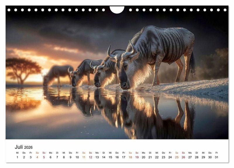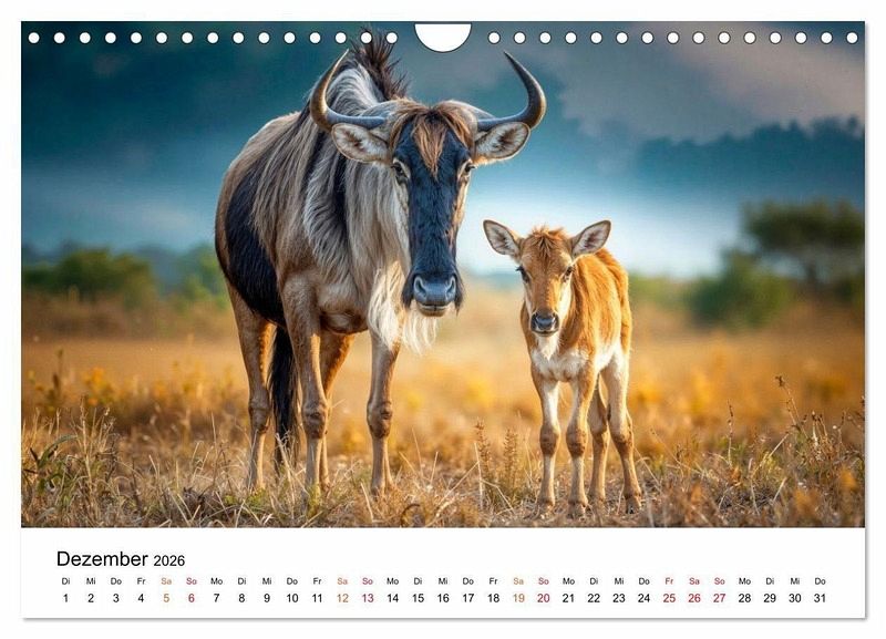 Ein Jahr voller Bewegung, Kraft und Naturgewalt: Dieser Kalender zeigt die eindrucksvolle Reise einer der größten Tierwanderungen der Erde. Gnus durchqueren Flüsse, trotzen Sandstürmen und begegnen Raubtieren - stets im Rhythmus der Savanne. Mal friedlich beim Trinken im Abendlicht, mal kämpferisch in der Paarungszeit, mal beschützend an der Seite ihres Nachwuchses. Gestaltet mit dem Auge fürs Detail werden diese Bilder zu einer Reise in die ungezähmte Wildnis Afrikas, wobei die grafische Umsetzung im Zusammenspiel klassischer Gestaltung und ausgewählter KI-basierter Methoden erfolgte. Ein…mehr