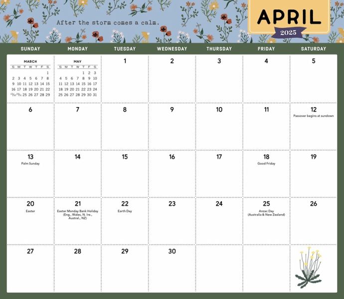 Mindfulness meets organization in this compact, magnetic-format calendar that combines inspiration, charm, and structure to keep you motivated throughout the year. * MINDFUL AND MAGNETIC: With a month at a glance grid and magnetic backer plus drill-hole, these compact format 9½” x 8¼” padded calendars are perfect for fridges, walls, cubicles, and desks. * ORGANIZED AND ENCOURAGED: Charming illustrations and uplifting affirmations adorn each notepad-style page while leaving plenty of space to write your family’s goings-on throughout the year. Pages tear off easily each month! * GREAT GIFT: For you or someone you care about, it’s a gift of beauty, mindfulness, and no-nonsense organization. Perfect for busy families, professionals, and students! * NOW PLASTIC-FREE!: For 2025, Workman Calendars are completely plastic-free and printed on responsibly sourced paper. All magnetic calendars are packaged in a paper envelope – no more shrink-wrap!