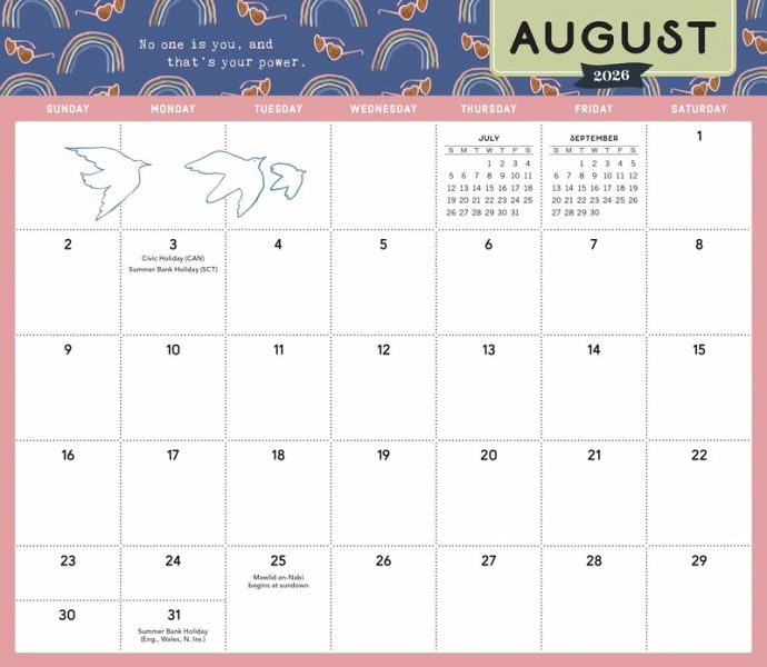 * MINDFUL AND MAGNETIC: With a month at a glance grid and magnetic backer plus drill-hole, these compact format 9½” x 8¼” padded calendars are perfect for fridges, walls, cubicles, and desks. * ORGANIZED AND ENCOURAGED: Charming illustrations and uplifting affirmations adorn each notepad-style page while leaving plenty of space to write your family’s goings-on throughout the year. Pages tear off easily each month! * GREAT GIFT: For you or someone you care about, it’s a gift of beauty, mindfulness, and no-nonsense organization. Perfect for busy families, professionals, and students! * NOW PLASTIC-FREE!: Workman magnetic calendars are now packaged in a paper envelope—no more shrink-wrap!