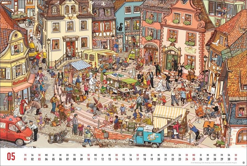 - Vom Rummel bis zur belebten Straßenkreuzung: Die Bilder von Doro Göbel und Peter Knorr enthalten unzählige Details, die es zu entdecken gilt!- Suchbilder, die Groß und Klein gleichermaßen faszinieren: der perfekte Kinderzimmer-Kalender, vor dem sich alle gerne versammeln- Der perfekte Rahmen für die schönsten Wimmelbilder des deutschen Künstlerehepaars: großer Kalender im Blickfang-Format 58 x 39 cm- Ob ein Blick ins kunterbunte Zuhause, ein belebter Tag auf dem Markt oder eine ereignisreiche Flussfahrt: Die Illustrationen in diesem Monatskalender laden dazu ein, immer wieder neue Geschichten zu erzählen- Kalender-Vielfalt für Groß und Klein: Stöbern Sie im umfangreichen Sortiment von Heye aus dem Athesia Kalenderverlag!
