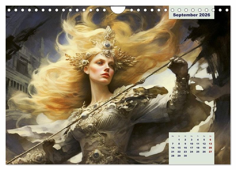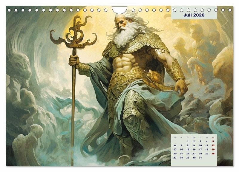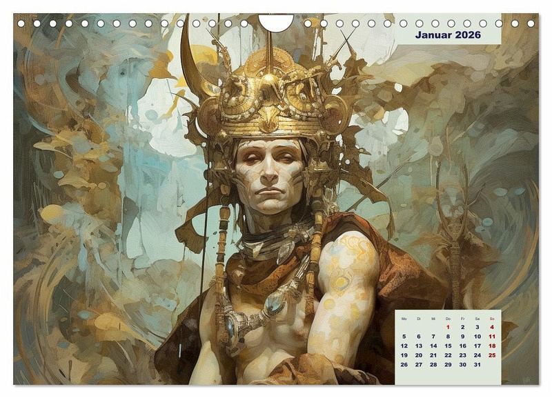 Mit diesem Fantasy-Kalender erwachen die alten Götter zum Leben. Diese Illustrationen nehmen Sie mit auf eine Reise zu den Bewohnern des Olymp. Mythologische Figuren, welche die Fantasie anregen und in die Welt der Mysterien und Magie entführen. Diese schönen Bilder wurden mit KI erstellt und bringen göttliche Schwingungen in jedes Zuhause.