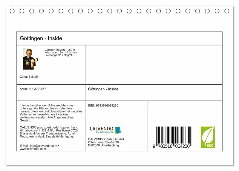 QUALITÄT - Hochwertiger Fotokalender mit 12 wunderschönen Motiven auf lichtbeständigem Bilderdruckpapier, robuste Spiralbindung.NACHHALTIG - deutliche Abfallreduzierung durch bedarfsgerechte Einzelstückfertigung, umweltfreundliches FSC-zertifiziertes Papier, Produktion in Deutschland, klimabewusste Logistik.PERFEKTES GESCHENK - Kalender für Freunde und Familie, für Kinder und Erwachsene, jung und alt, zu Weihnachten, Geburtstag oder zwischendurch.VIELFALT - Bildkalender in verschiedenen Formaten, z.B. DIN A5, DIN A4, DIN A3 sowie DIN A2. Ob Naturmotiv, Gemälde oder Fotos, ideal für ein persönliches Wohlfühlambiente.Fotografischer Rundgang durch die Universitätsstadt Göttingen von Autor(in): Claus Eckerlin