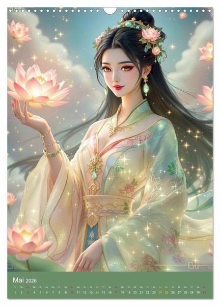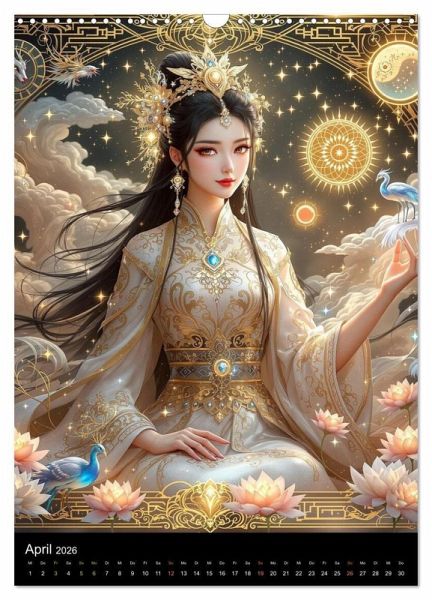 Lassen Sie sich vom Kalender "Göttinnen im chinesischem Stil - eine Reise durch die chinesische Mythologie" in eine geheimnisvolle Welt voller Schönheit, Magie und uralter Weisheiten entführen. Jede Kalenderseite präsentiert eindrucksvolle, ki-generierte Illustrationen mächtiger und anmutiger Göttinnen. Entdecken Sie die Vielfalt der fernöstlichen Mythologie - ein einzigartiges Kunstwerk für Ihr Zuhause, das spirituelle Tiefe und ästhetische Eleganz vereint. Ideal für alle, die Kultur, Geschichte und mystische Energie lieben!