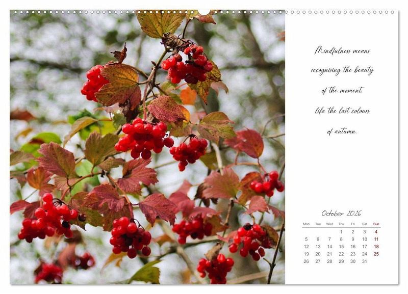 PREMIUM COLLECTION - Brilliant photo calendar with 12 beautiful motifs, high-gloss art print in museum quality.QUALITY - high-quality materials, sturdy back cover with 2 innovative insert pockets for optimum presentation on the wall.SUSTAINABLE - significant reduction in waste thanks to customised one-off production, environmentally friendly FSC-certified paper, production in Germany, climate-conscious logistics.PERFECT GIFT - calendars for friends and family, for children and adults, young and old, for Christmas, birthdays or in between.Mindful moments in the great outdoors. von Autor(in): Michaela Spreider
