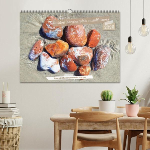 Every month a moment of stillness, captured in the beauty of nature. The delicate blossom of the hazelnut, gently floating clouds, timeless stones in the sand. Each picture tells a story of mindfulness. Accompanied by inspiring sayings, this calendar invites you to pause, take a deep breath and feel the magic of the moment. Let yourself be carried through the year with gentle images and words that open your heart.