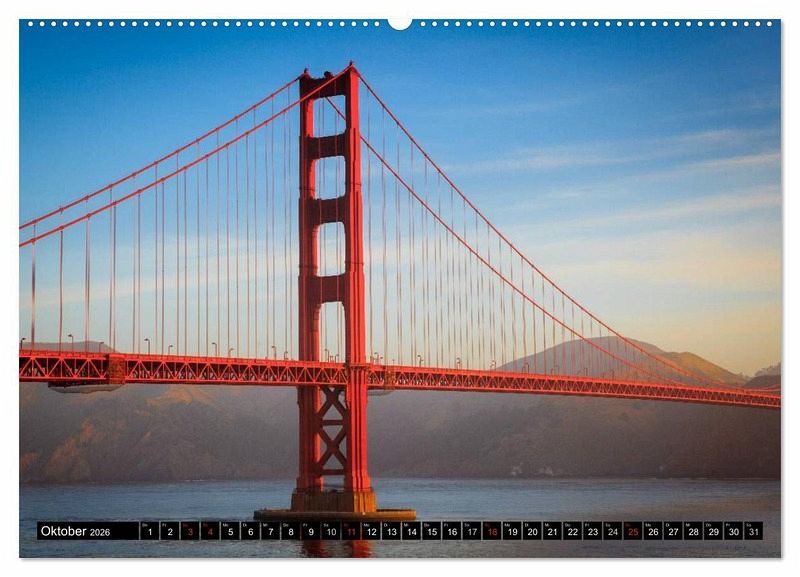 Was die Freiheitsstatue in New York ist, ist die Golden Gate Bridge im Westen der USA. Das Wahrzeichen der Westküste in San Francisco fasziniert seine Besucher vom ersten Moment an. Die beeindruckende Spannweite von 1.280 Metern sowie die Gesamtlänge von über 2.800 Metern bringen die Betrachter immer wieder zum Staunen. In diesem Kalender finden sich 13 Aufnahmen aus der verschiedensten Winkeln auf dieses faszinierende Bauwerk.