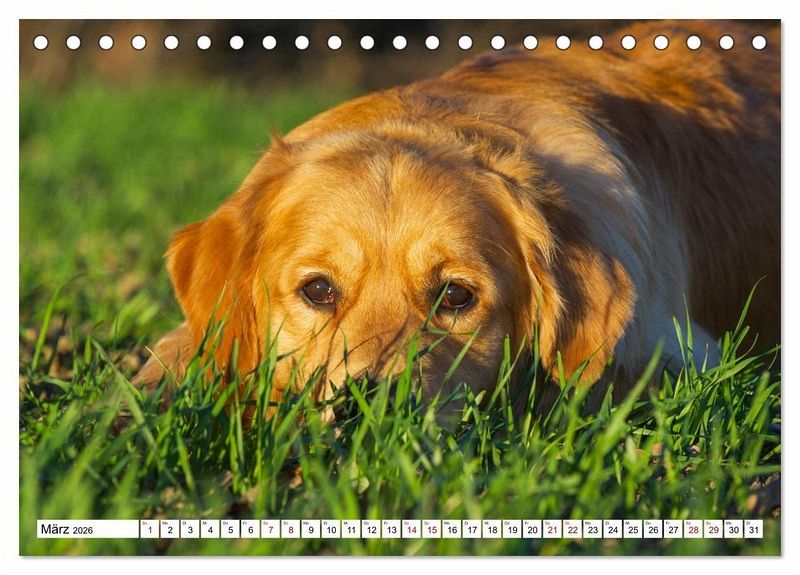 Wer kennt ihn nicht - den Golden Retriever? Täglich begegnet er uns auf unseren Wegen. Seine sprichwörtliche Schönheit, seine Freundlichkeit und sein Wille, uns zu gefallen machen ihn zum idealen Begleiter. Die Tierfotografin Sigrid Starick zeigt uns Golden Retriever in 13 wunderschönen Bildern, die uns durch das Jahr begleiten.