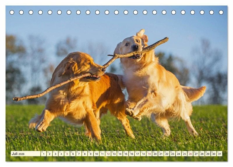 Wer kennt ihn nicht - den Golden Retriever? Täglich begegnet er uns auf unseren Wegen. Seine sprichwörtliche Schönheit, seine Freundlichkeit und sein Wille, uns zu gefallen machen ihn zum idealen Begleiter. Die Tierfotografin Sigrid Starick zeigt uns Golden Retriever in 13 wunderschönen Bildern, die uns durch das Jahr begleiten.
