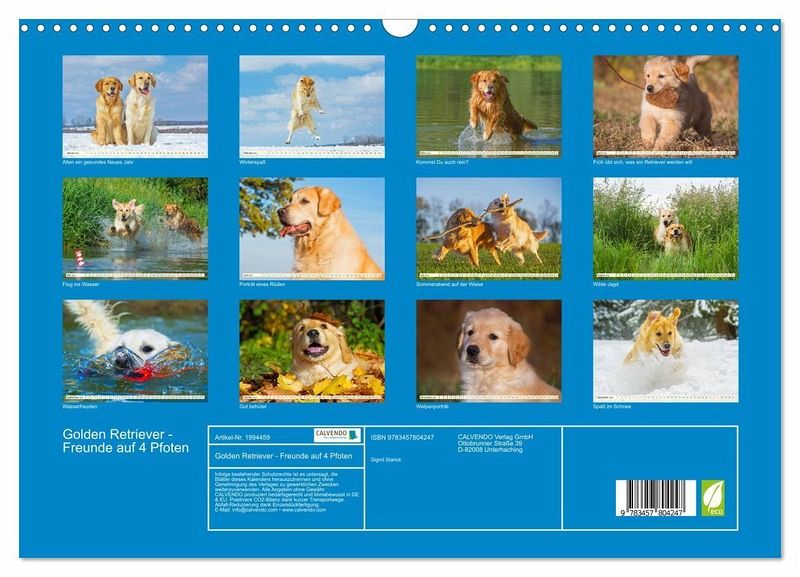 Wer kennt ihn nicht - den Golden Retriever? Täglich begegnet er uns auf unseren Wegen. Seine sprichwörtliche Schönheit, seine Freundlichkeit und sein Wille, uns zu gefallen machen ihn zum idealen Begleiter. Die Tierfotografin Sigrid Starick zeigt uns Golden Retriever in 13 wunderschönen Bildern, die uns durch das Jahr begleiten.