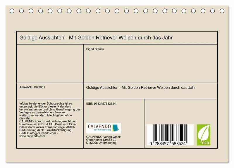 QUALITÄT - Hochwertiger Fotokalender mit 12 wunderschönen Motiven auf lichtbeständigem Bilderdruckpapier, robuste Spiralbindung.NACHHALTIG - deutliche Abfallreduzierung durch bedarfsgerechte Einzelstückfertigung, umweltfreundliches FSC-zertifiziertes Papier, Produktion in Deutschland, klimabewusste Logistik.PERFEKTES GESCHENK - Kalender für Freunde und Familie, für Kinder und Erwachsene, jung und alt, zu Weihnachten, Geburtstag oder zwischendurch.VIELFALT - Bildkalender in verschiedenen Formaten, z.B. DIN A5, DIN A4, DIN A3 sowie DIN A2. Ob Naturmotiv, Gemälde oder Fotos, ideal für ein persönliches Wohlfühlambiente.13 entzückendeFotos von Golden Retriever-Welpen begleiten Liebhaber der Rasse durch das Jahr von Autor(in): SiSta-Tierfoto