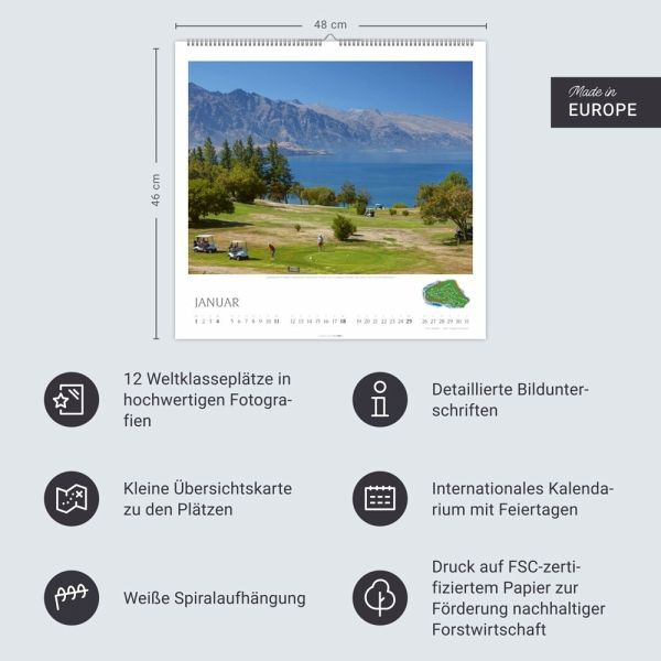 - Golfanlagen mit besonderer Atmosphäre: ein Jahres-Wandkalender für alle, die gerne ihre Zeit auf dem Green verbringen- Internationale Golfplätze in imposanten Aufnahmen, die das Liebhaber-Herz höherschlagen lassen- Hier würde man gerne sein Handicap verbessern: Sport-Kalender im extra großen Format 48 x 46 cm- Mit detaillierten Bildunterschriften zu den Golfplätzen und farbintensiven Fotos in Spitzenqualität- Ausgesuchte Themenvielfalt und renommierte Fotografen: die Monatskalender von Weingarten im Athesia Kalenderverlag