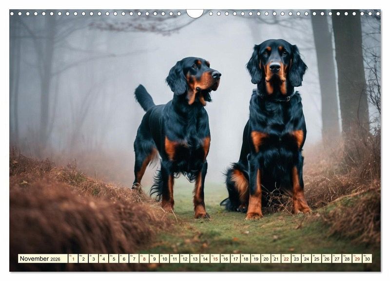 Abbildungen: Januar: Zwei sehr zügig unterwegs Februar: Vier niedliche Welpen März: Großer Sprung April: Zwei goldige Welpen Mai: Bei der Wasserarbeit Juni: