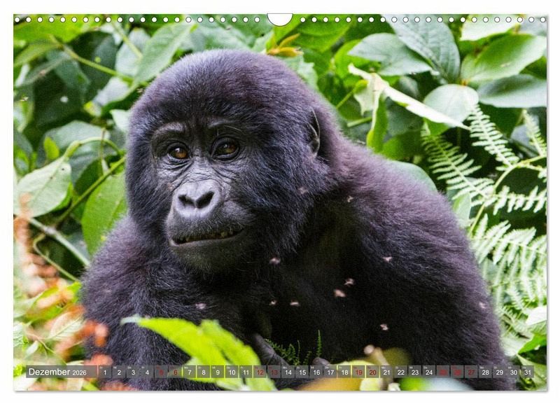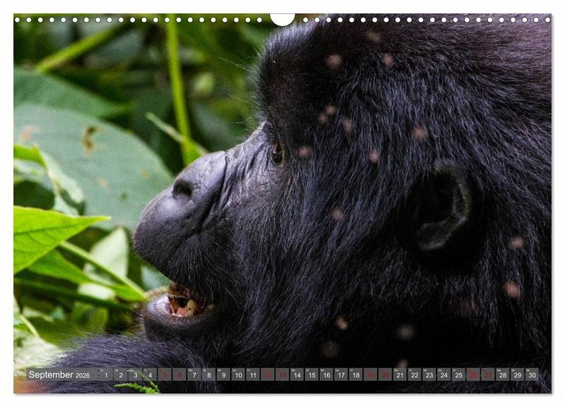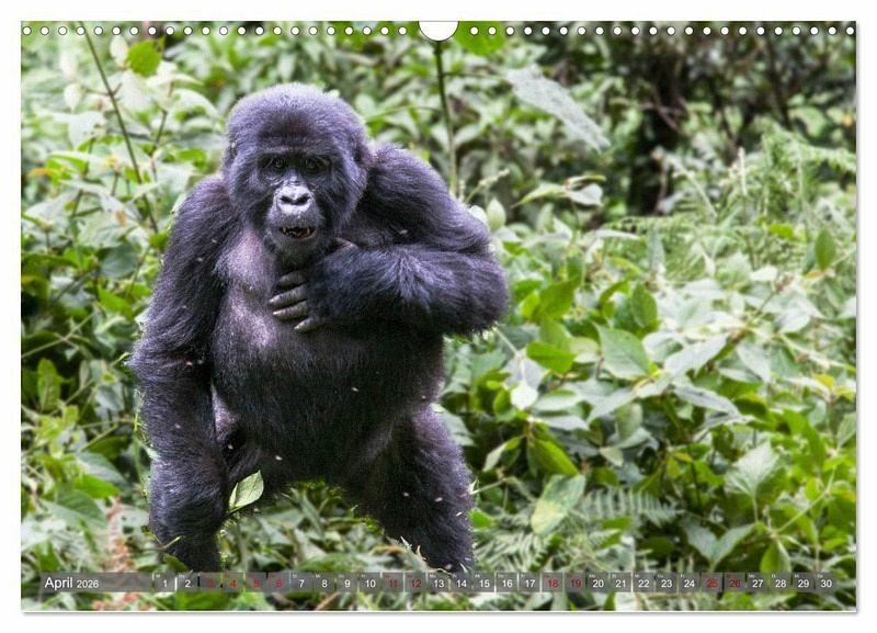 Der Kalender zeigt 13 Bilder dieser wunderbaren und eindrucksvollen Menschenaffen, aufgenommen im Bwindi-Nationalpark in Uganda.