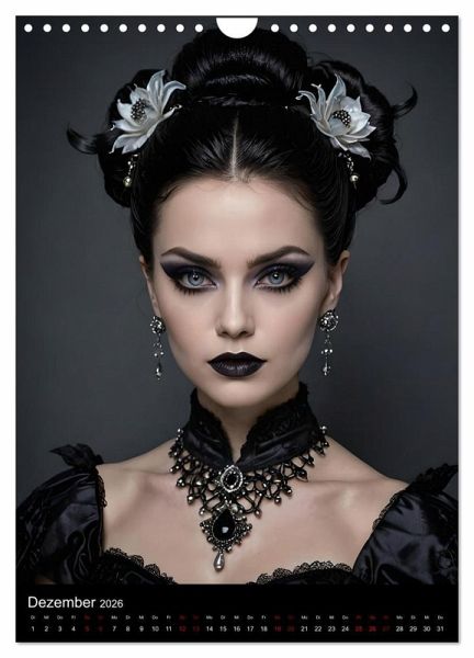 Tauche ein in eine Welt voller Mystik, Schönheit und Melancholie. Unser exklusiver Kalender präsentiert atemberaubende, KI-generierte Bilder von faszinierenden Frauen im Gothic-Look. Jede Seite dieses einzigartigen Kalenders vereint die düstere Ästhetik der Gothic-Kultur mit einer unvergleichlichen Eleganz und Tiefe.