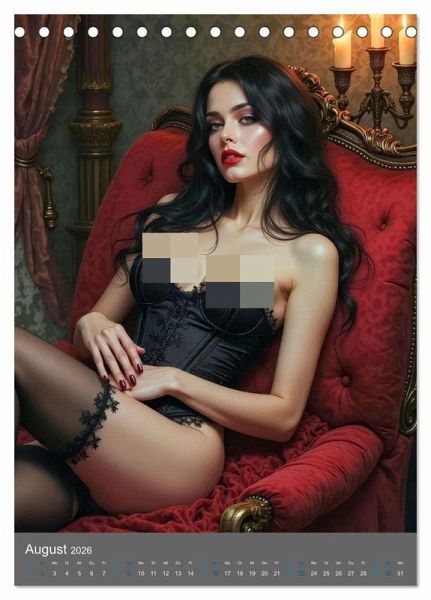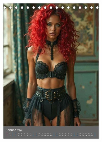 Tauchen Sie ein in die geheimnisvolle Welt der Verführung mit diesem exklusiven KI Kalender. Dieser einzigartige Kalender präsentiert jeden Monat atemberaubende Bilder von wunderschönen, erotischen Gothic-Frauen in verführerischen Dessous. Die Kombination aus dunkler Eleganz und sinnlicher Ästhetik schafft ein visuelles Erlebnis, das die Sinne betört und die Fantasie anregt.