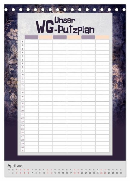 QUALITÄT - Hochwertiger Fotokalender mit 12 wunderschönen Motiven auf lichtbeständigem Bilderdruckpapier, robuste Spiralbindung.NACHHALTIG - deutliche Abfallreduzierung durch bedarfsgerechte Einzelstückfertigung, umweltfreundliches FSC-zertifiziertes Papier, Produktion in Deutschland, klimabewusste Logistik.PERFEKTES GESCHENK - Kalender für Freunde und Familie, für Kinder und Erwachsene, jung und alt, zu Weihnachten, Geburtstag oder zwischendurch.VIELFALT - Bildkalender in verschiedenen Formaten, z.B. DIN A5, DIN A4, DIN A3 sowie DIN A2. Ob Naturmotiv, Gemälde oder Fotos, ideal für ein persönliches Wohlfühlambiente.Kalender und Putzplan in einem - Design "Gothic Texturen". Perfekt für Wohngemeinschaften. von Autor(in): Sabrina Weinrich