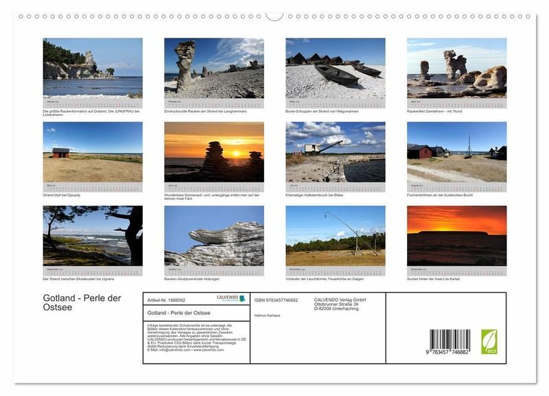 PREMIUM-LINIE - Brillanter Fotokalender mit 12 wunderschönen Motiven, Kunstdruck in Hochglanz in Museumsqualität.QUALITÄT - edle Materialien, stabile Rückwand mit 2 innovativen Einstecktaschen für eine optimale Präsentation an der Wand.NACHHALTIG - deutliche Abfallreduzierung durch bedarfsgerechte Einzelstückfertigung, umweltfreundliches FSC-zertifiziertes Papier, Produktion in Deutschland, klimabewusste Logistik.PERFEKTES GESCHENK - Kalender für Freunde und Familie, für Kinder und Erwachsene, jung und alt, zu Weihnachten, Geburtstag oder zwischendurch.Die Küsten von Gotland mit Raukenformationen. von Autor(in): Helmut Harhaus