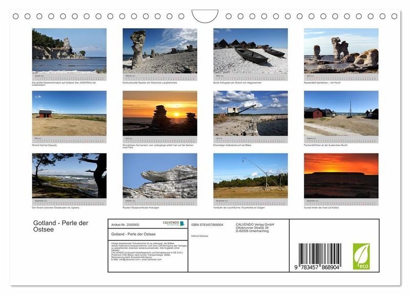 QUALITÄT - Hochwertiger Fotokalender mit 12 wunderschönen Motiven auf lichtbeständigem Bilderdruckpapier, robuste Spiralbindung mit Aufhängebügel.NACHHALTIG - deutliche Abfallreduzierung durch bedarfsgerechte Einzelstückfertigung, umweltfreundliches FSC-zertifiziertes Papier, Produktion in Deutschland, klimabewusste Logistik.PERFEKTES GESCHENK - Kalender für Freunde und Familie, für Kinder und Erwachsene, jung und alt, zu Weihnachten, Geburtstag oder zwischendurch.VIELFALT - Bildkalender in verschiedenen Formaten, z.B. DIN A5, DIN A4, DIN A3 sowie DIN A2. Ob Naturmotiv, Gemälde oder Fotos, ideal für ein persönliches Wohlfühlambiente.Die Küsten von Gotland mit Raukenformationen. von Autor(in): Helmut Harhaus