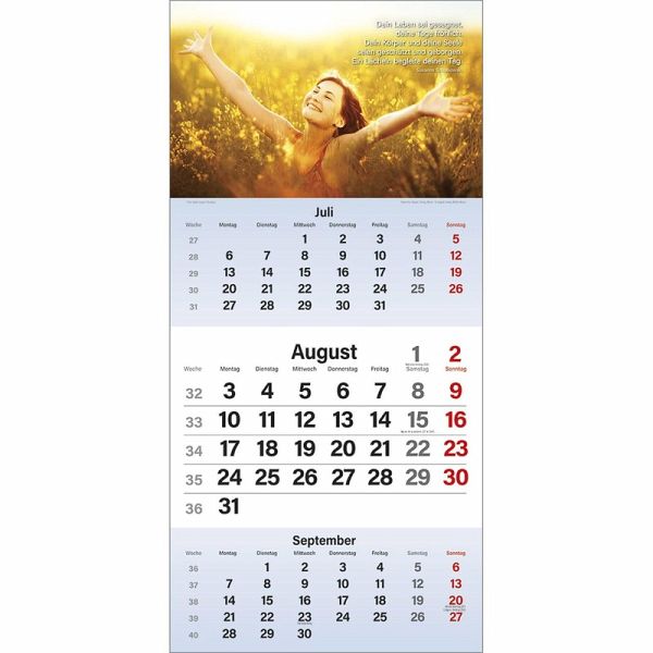 3-Monats-TimerTerminer sind gute GedankenstützenDer Terminer für Büro, Arbeitszimmer und Küche.Drei Monate auf einen Blick (+ Wochenangaben) sind die praktischenSeiten dieses Kalenders.Schöne Bilder und gute Texte schmücken ihn.DOUBLE-SIZE-Terminer 30 x 31 cm (aufgeklappt 62 cm)3-Monats-Kalender + Wochenangaben14 Blätter, Spiralbindung, mit MARKI-PUNKT.