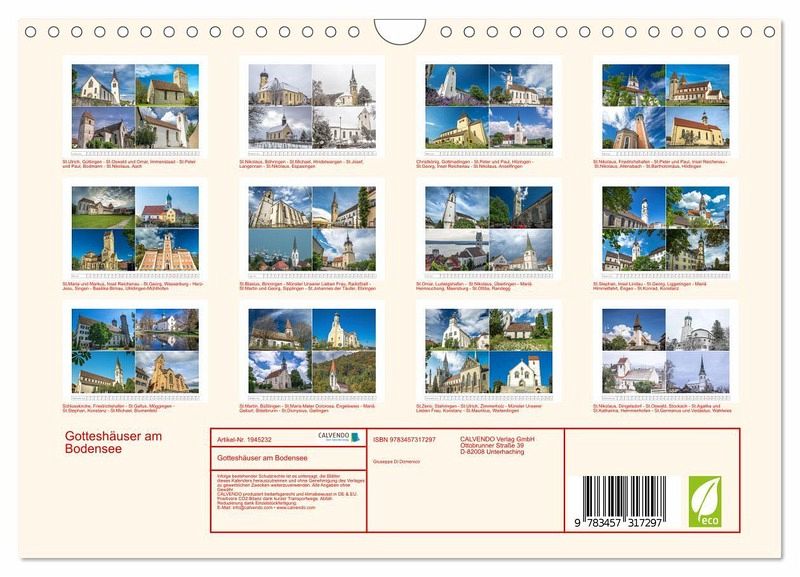 QUALITÄT - Hochwertiger Fotokalender mit 12 wunderschönen Motiven auf lichtbeständigem Bilderdruckpapier, robuste Spiralbindung mit Aufhängebügel.NACHHALTIG - deutliche Abfallreduzierung durch bedarfsgerechte Einzelstückfertigung, umweltfreundliches FSC-zertifiziertes Papier, Produktion in Deutschland, klimabewusste Logistik.PERFEKTES GESCHENK - Kalender für Freunde und Familie, für Kinder und Erwachsene, jung und alt, zu Weihnachten, Geburtstag oder zwischendurch.VIELFALT - Bildkalender in verschiedenen Formaten, z.B. DIN A5, DIN A4, DIN A3 sowie DIN A2. Ob Naturmotiv, Gemälde oder Fotos, ideal für ein persönliches Wohlfühlambiente.Stadt- und Dorfkirchen am Bodensee von Autor(in): Giuseppe Di Domenico