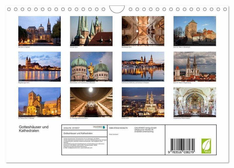 Dieser Kalender überzeugt mit 12 beeindruckenden Fotos berühmter deutscher Gotteshäuser und Kathedralen von München über Köln bis Berlin und von Münster bis Magdeburg.