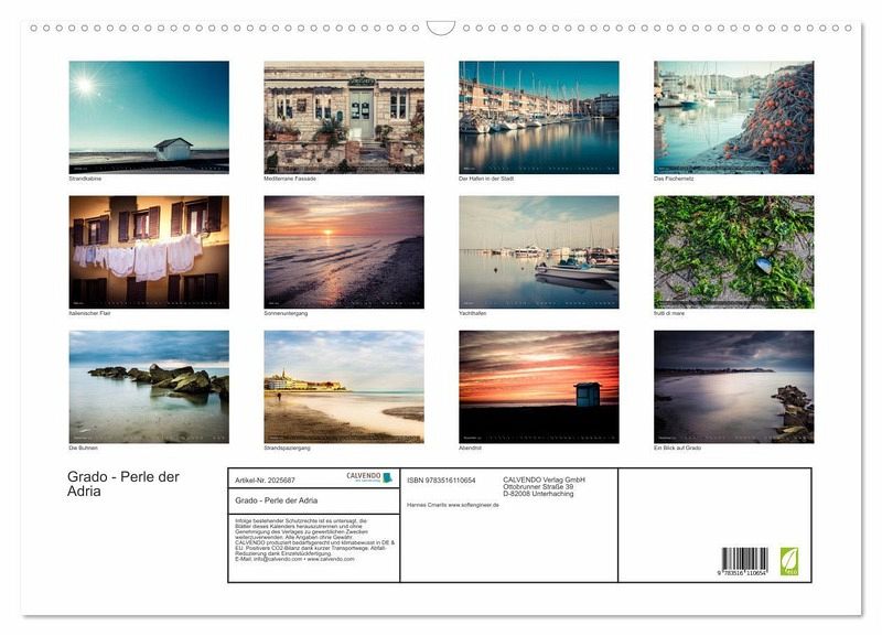 QUALITÄT - Hochwertiger Fotokalender mit 12 wunderschönen Motiven auf lichtbeständigem Bilderdruckpapier, robuste Spiralbindung mit Aufhängebügel.NACHHALTIG - deutliche Abfallreduzierung durch bedarfsgerechte Einzelstückfertigung, umweltfreundliches FSC-zertifiziertes Papier, Produktion in Deutschland, klimabewusste Logistik.PERFEKTES GESCHENK - Kalender für Freunde und Familie, für Kinder und Erwachsene, jung und alt, zu Weihnachten, Geburtstag oder zwischendurch.VIELFALT - Bildkalender in verschiedenen Formaten, z.B. DIN A5, DIN A4, DIN A3 sowie DIN A2. Ob Naturmotiv, Gemälde oder Fotos, ideal für ein persönliches Wohlfühlambiente.Impressionen von Grado - ein Städtchen an der Adria von Autor(in): hannes cmarits