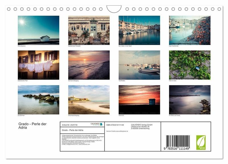 QUALITÄT - Hochwertiger Fotokalender mit 12 wunderschönen Motiven auf lichtbeständigem Bilderdruckpapier, robuste Spiralbindung mit Aufhängebügel.NACHHALTIG - deutliche Abfallreduzierung durch bedarfsgerechte Einzelstückfertigung, umweltfreundliches FSC-zertifiziertes Papier, Produktion in Deutschland, klimabewusste Logistik.PERFEKTES GESCHENK - Kalender für Freunde und Familie, für Kinder und Erwachsene, jung und alt, zu Weihnachten, Geburtstag oder zwischendurch.VIELFALT - Bildkalender in verschiedenen Formaten, z.B. DIN A5, DIN A4, DIN A3 sowie DIN A2. Ob Naturmotiv, Gemälde oder Fotos, ideal für ein persönliches Wohlfühlambiente.Impressionen von Grado - ein Städtchen an der Adria von Autor(in): hannes cmarits