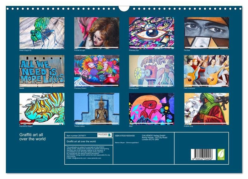 QUALITY - High-quality photo calendar with 12 beautiful images on light-resistant paper, robust spiral binding with hanger.SUSTAINABLE - Significant waste reduction due to print-on-demand production, environmentally friendly FSC-certified paper, produced in the UK, climate-conscious logistical processes.PERFECT GIFT - calendars for friends and family, for children, all ages and all occasions, from Christmas to birthdays and everything in between.LOTS OF CHOICE - Wall calendars in different sizes (DIN A4 and DIN A3), for any topic and personal taste, featuring photography, painting and illustrations.Beautiful Graffitis you can find everywhere in the world, author: Stimmungsbilder1