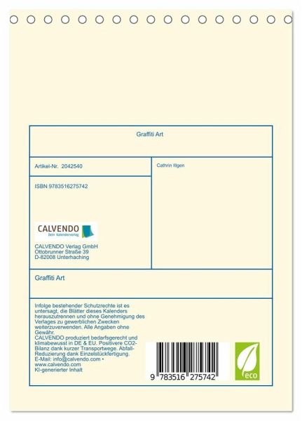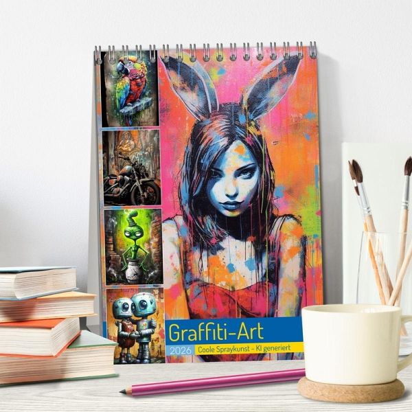 QUALITÄT - Hochwertiger Fotokalender mit 12 wunderschönen Motiven auf lichtbeständigem Bilderdruckpapier, robuste Spiralbindung.NACHHALTIG - deutliche Abfallreduzierung durch bedarfsgerechte Einzelstückfertigung, umweltfreundliches FSC-zertifiziertes Papier, Produktion in Deutschland, klimabewusste Logistik.PERFEKTES GESCHENK - Kalender für Freunde und Familie, für Kinder und Erwachsene, jung und alt, zu Weihnachten, Geburtstag oder zwischendurch.VIELFALT - Bildkalender in verschiedenen Formaten, z.B. DIN A5, DIN A4, DIN A3 sowie DIN A2. Ob Naturmotiv, Gemälde oder Fotos, ideal für ein persönliches Wohlfühlambiente.Farbenfrohe Graffiti-Kunst - KI generiert von Autor(in): Catill