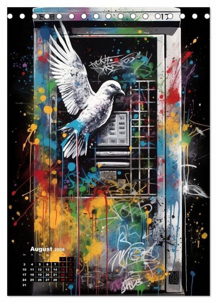 Du liebst Street Art Graffiti und möchtest jeden Monat ein neues Kunstwerk an deiner Wand bewundern? Dann ist dieser Kalender genau das Richtige für dich! Graffiti sind Bilder, Schriftzüge oder Zeichen, die mit verschiedenen Techniken auf Oberflächen im privaten und öffentlichen Raum erstellt wurden. Graffiti können eine Form von Kunst oder Vandalismus sein, je nachdem, ob sie legal oder illegal gemacht werden. Graffiti haben eine lange Geschichte, die bis in die Antike zurückreicht. Heute gibt es viele verschiedene Stile und Formen von Graffiti, die oft eine kreative und persönliche Ausdrucksweise sind. Dieser Kalender zeigt dir einzigartige Bilder, die von einer künstlichen Intelligenz generiert wurden. Die Bilder sind inspiriert von coolen und bunten Graffiti im modernen, urbanen Stil.