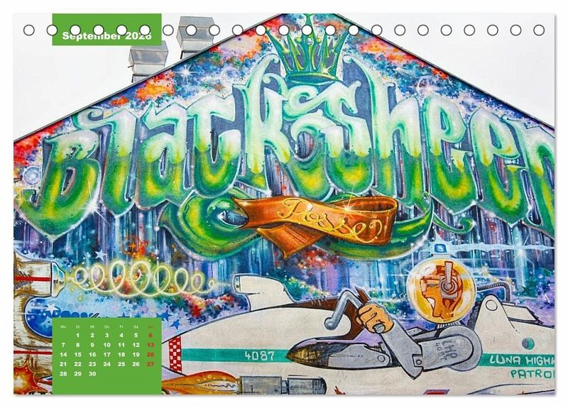 Der Wandkalender für das Jahr 2014, zeigt dank der atemberaubenden komponierten Bilder des Fotografen Dirk Meutzner, die schillerndsten und originellsten Graffiti aus der Dresdner-Neustadt.