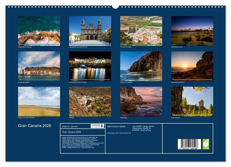 PREMIUM-LINIE - Brillanter Fotokalender mit 12 wunderschönen Motiven, Kunstdruck in Hochglanz in Museumsqualität.QUALITÄT - edle Materialien, stabile Rückwand mit 2 innovativen Einstecktaschen für eine optimale Präsentation an der Wand.NACHHALTIG - deutliche Abfallreduzierung durch bedarfsgerechte Einzelstückfertigung, umweltfreundliches FSC-zertifiziertes Papier, Produktion in Deutschland, klimabewusste Logistik.PERFEKTES GESCHENK - Kalender für Freunde und Familie, für Kinder und Erwachsene, jung und alt, zu Weihnachten, Geburtstag oder zwischendurch.Die schönen Seiten der kanarischen Insel Gran Canaria von Autor(in): Photography PM