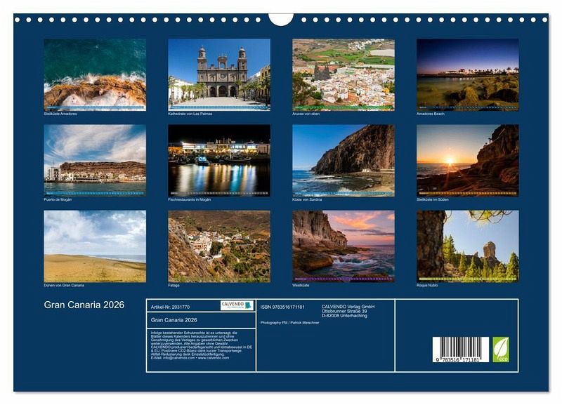 QUALITÄT - Hochwertiger Fotokalender mit 12 wunderschönen Motiven auf lichtbeständigem Bilderdruckpapier, robuste Spiralbindung mit Aufhängebügel.NACHHALTIG - deutliche Abfallreduzierung durch bedarfsgerechte Einzelstückfertigung, umweltfreundliches FSC-zertifiziertes Papier, Produktion in Deutschland, klimabewusste Logistik.PERFEKTES GESCHENK - Kalender für Freunde und Familie, für Kinder und Erwachsene, jung und alt, zu Weihnachten, Geburtstag oder zwischendurch.VIELFALT - Bildkalender in verschiedenen Formaten, z.B. DIN A5, DIN A4, DIN A3 sowie DIN A2. Ob Naturmotiv, Gemälde oder Fotos, ideal für ein persönliches Wohlfühlambiente.Die schönen Seiten der kanarischen Insel Gran Canaria von Autor(in): Photography PM