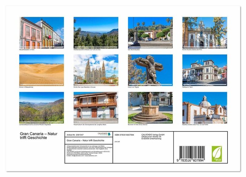 Der Kalender zeigt Ihnen faszinierende Impressionen der beliebten Kanareninsel Gran Canaria - von üppigen Regenwäldern und kargen Wüstenlandschaften bis hin zu eindrucksvollen historischen Bauwerken.