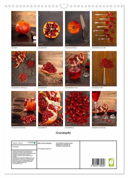 QUALITÄT - Hochwertiger Fotokalender mit 12 wunderschönen Motiven auf lichtbeständigem Bilderdruckpapier, robuste Spiralbindung mit Aufhängebügel.NACHHALTIG - deutliche Abfallreduzierung durch bedarfsgerechte Einzelstückfertigung, umweltfreundliches FSC-zertifiziertes Papier, Produktion in Deutschland, klimabewusste Logistik.PERFEKTES GESCHENK - Kalender für Freunde und Familie, für Kinder und Erwachsene, jung und alt, zu Weihnachten, Geburtstag oder zwischendurch.VIELFALT - Bildkalender in verschiedenen Formaten, z.B. DIN A5, DIN A4, DIN A3 sowie DIN A2. Ob Naturmotiv, Gemälde oder Fotos, ideal für ein persönliches Wohlfühlambiente.Die Kraft des Granatapfels von Autor(in): Fotodesign Siepmann
