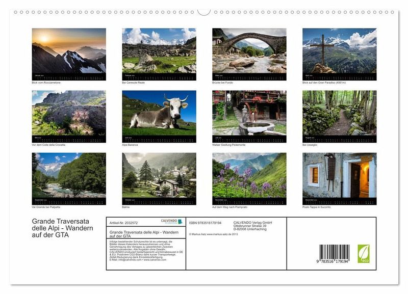 PREMIUM-LINIE - Brillanter Fotokalender mit 12 wunderschönen Motiven, Kunstdruck in Hochglanz in Museumsqualität.QUALITÄT - edle Materialien, stabile Rückwand mit 2 innovativen Einstecktaschen für eine optimale Präsentation an der Wand.NACHHALTIG - deutliche Abfallreduzierung durch bedarfsgerechte Einzelstückfertigung, umweltfreundliches FSC-zertifiziertes Papier, Produktion inDeutschland, klimabewusste Logistik.PERFEKTES GESCHENK - Kalender für Freunde und Familie, für Kinder und Erwachsene, jung und alt, zu Weihnachten, Geburtstag oder zwischendurch.Fotos von Wanderungen auf der GTA - ein Weitwanderweg im Westen der italienischen Alpen von Autor(in): Markus Aatz