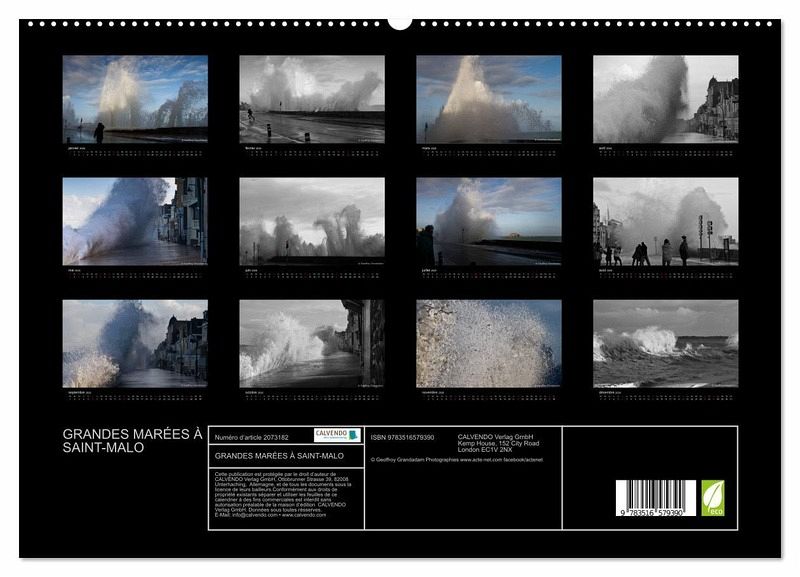 Un calendrier avec des photos des grandes marées à Saint-Malo qui sont les plus importantes d'Europe. Un spectacle aussi fantastique qu'impressionnant à suivre mois par mois.