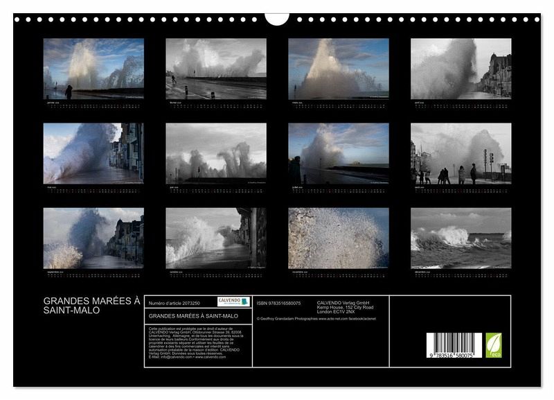 Un calendrier avec des photos des grandes marées à Saint-Malo qui sont les plus importantes d'Europe. Un spectacle aussi fantastique qu'impressionnant à suivre mois par mois.