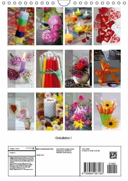 Dieser fröhliche Kalender dient Ihnen als Erinnerungsstütze für jede Art von Ereignis: Geburtstage, Hochzeitstage, Jubiläen und, und, und. Erfreuen Sie sich an den bunten Fotos.