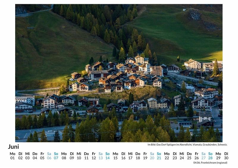 Entdecken Sie die atemberaubende Schönheit Graubündens mit unserem exklusiven Wandkalender! Lassen Sie sich Monat für Monat von 12 sorgfältig ausgewählten Motiven verzaubern, die die majestätische Natur und die charmanten Dörfer dieser einzigartigen Schweizer Region einfangen. Gedruckt auf hochwertigem, lichtbeständigem Bilderdruckpapier, bringt dieser Kalender die Magie Graubündens direkt in Ihr Zuhause. Nachhaltigkeit liegt uns am Herzen: Unsere Kalender werden in Deutschland auf FSC-zertifiziertem Papier produziert. Perfekt als Geschenk oder für die eigene Wand - holen Sie sich ein Stück Graubünden in Ihr Leben! Jetzt bestellen und jeden Monat genießen! Hochwertig Erleben Sie ein Jahr voller Eleganz mit unserem Premium-Fotokalender. Jedes der 12 Motive ist auf hochwertigem, lichtbeständigem Bilderdruckpapier gedruckt, um die Lebendigkeit jedes Bildes zu bewahren. Die robuste Spiralbindung gewährleistet Langlebigkeit und einfache Handhabung. Nachhaltig Unser Engagement für die Umwelt spiegelt sich in jedem Exemplar wider. Durch die Produktion auf Abruf reduzieren wir signifikant unseren Abfall. Wir verwenden ausschließlich umweltfreundliches, FSC-zertifiziertes Papier. Stolz gefertigt in Deutschland, achten wir bei unserer Logistik auf Klimaschutz, um unseren ökologischen Fußabdruck zu minimieren. Das ideale Geschenk Dieser Kalender ist das perfekte Präsent für jeden Anlass - ob Weihnachten, Geburtstage oder einfach als liebevolle Aufmerksamkeit zwischendurch. Geeignet für Freunde, Familie, Kinder und Erwachsene gleichermaßen, bereichert er jedes Zuhause mit seiner Vielfalt und Schönheit, unabhängig vom Alter der Beschenkten.