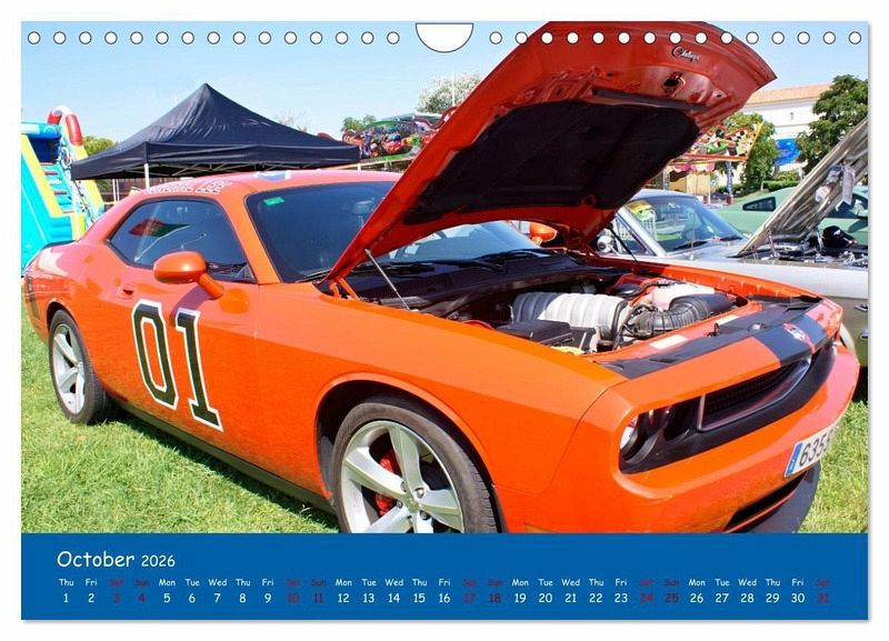 They are the muscle cars on our streets. The high-displacement US cars. Big engines with a lot of power made them popular. In this wall calendar, we have selected particularly beautiful pictures from yesterday and today.