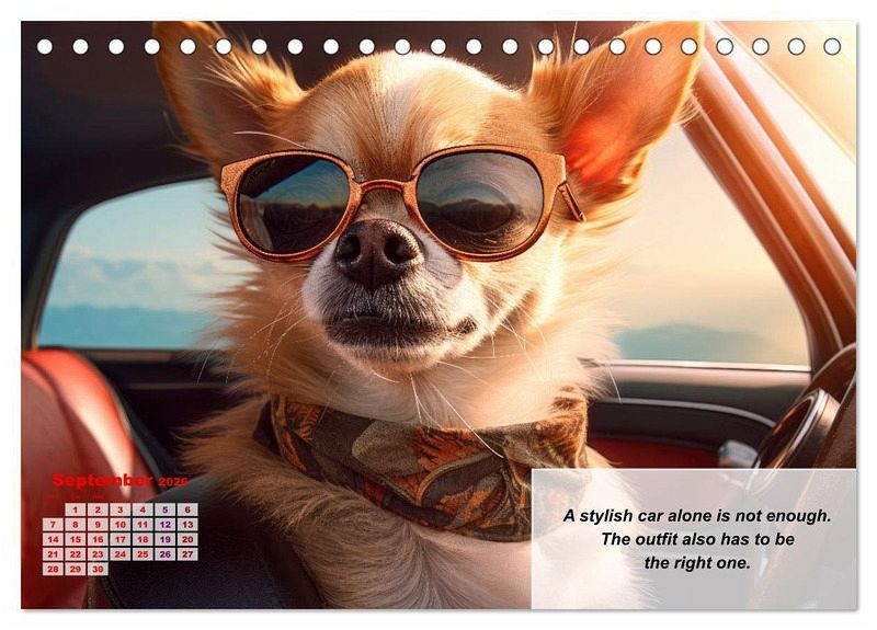 Discover the ultimate annual calendar for all Chihuahua lovers. Our unique calendar presents a collection of humorous and heart warming Chihuahua motifs generated by ai. Each image is accompanied by a fitting quote that perfectly captures the nature and personality of these adorable dogs. Whether as a gift for a Chihuahua fan or as a piece of jewelry for your own wall, this calendar will bring joy and a smile to your face month after month. With sayings that range from the humorous to the profound, our calendar offers not only visual inspiration, but spiritual inspiration as well. Get ready for a year full of laughter, love and Chihuahua. Let the funny Chihuahua motifs brighten up every day in the future.