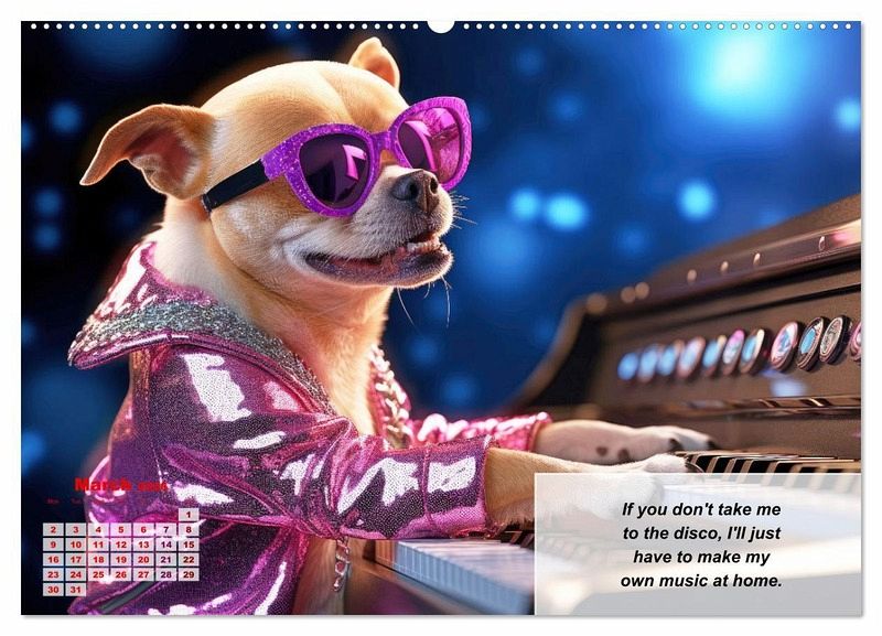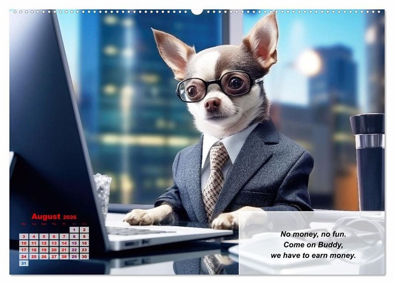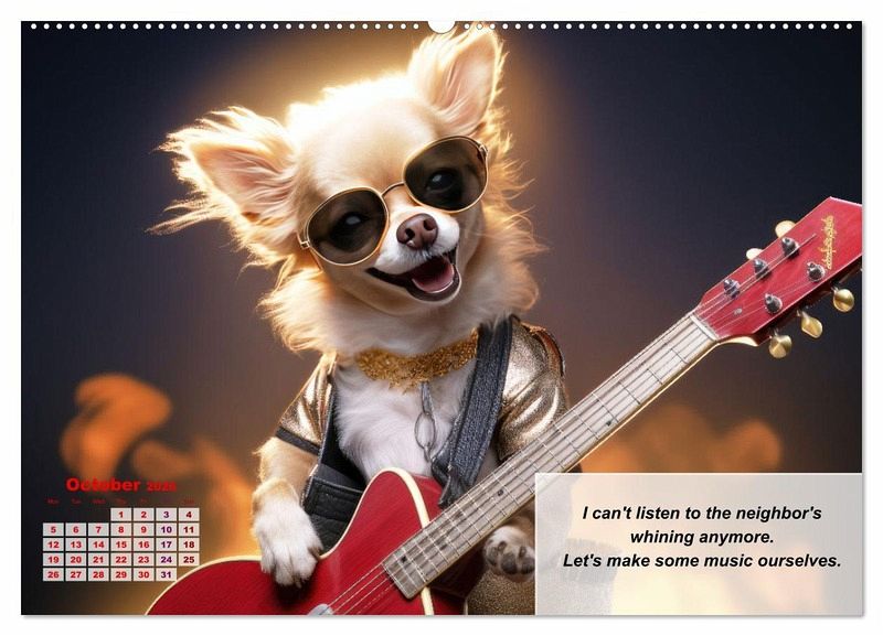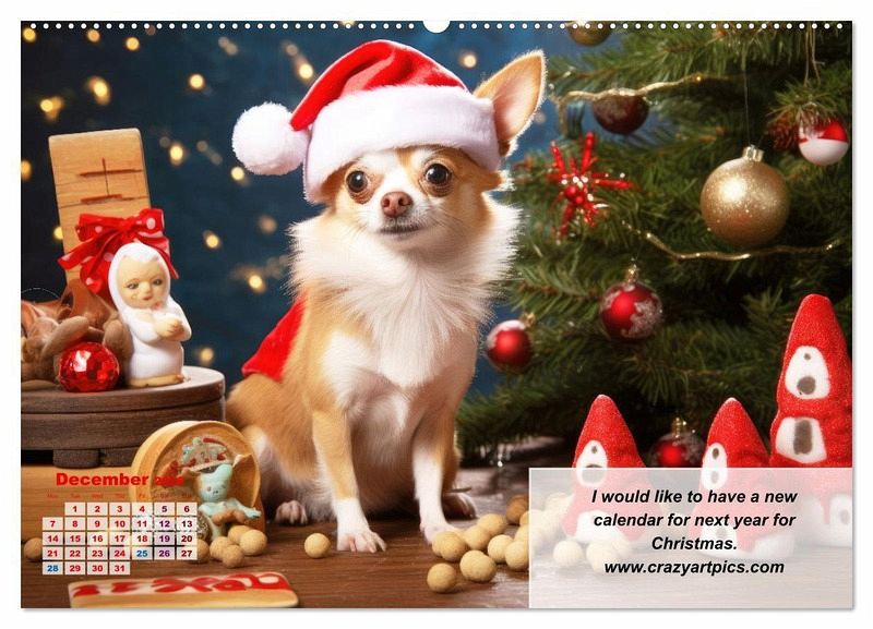 Discover the ultimate annual calendar for all Chihuahua lovers. Our unique calendar presents a collection of humorous and heart warming Chihuahua motifs generated by ai. Each image is accompanied by a fitting quote that perfectly captures the nature and personality of these adorable dogs. Whether as a gift for a Chihuahua fan or as a piece of jewelry for your own wall, this calendar will bring joy and a smile to your face month after month. With sayings that range from the humorous to the profound, our calendar offers not only visual inspiration, but spiritual inspiration as well. Get ready for a year full of laughter, love and Chihuahua. Let the funny Chihuahua motifs brighten up every day in the future.