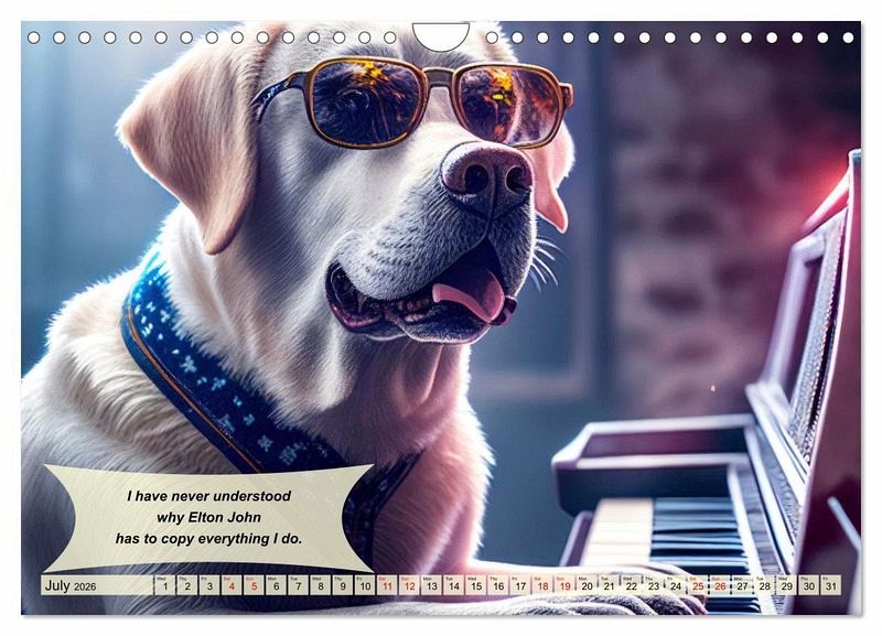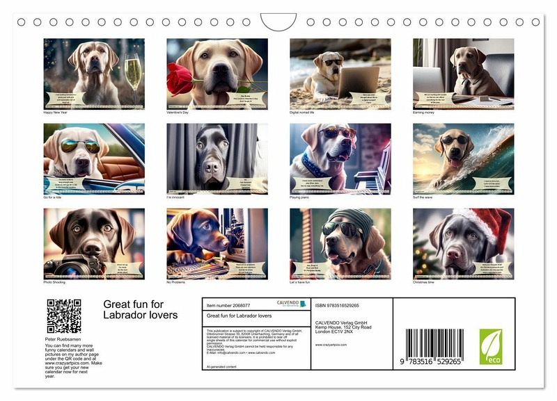 QUALITY - High-quality photo calendar with 12 beautiful images on light-resistant paper, robust spiral binding with hanger.SUSTAINABLE - Significant waste reduction due to print-on-demand production, environmentally friendly FSC-certified paper, produced in the UK, climate-conscious logistical processes.PERFECT GIFT - calendars for friends and family, for children, all ages and all occasions, from Christmas to birthdays andeverything in between.LOTS OF CHOICE - Wall calendars in different sizes (DIN A4 and DIN A3), for any topic and personal taste, featuring photography, painting and illustrations.A must have for all Labrador owners who love humor, author: Peter Rübsamen