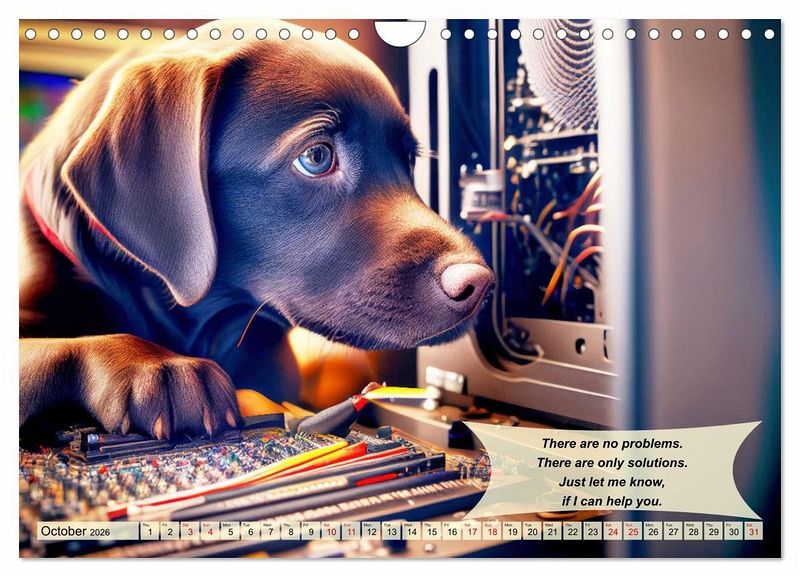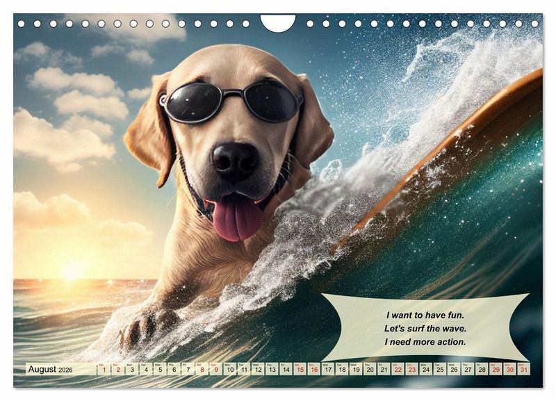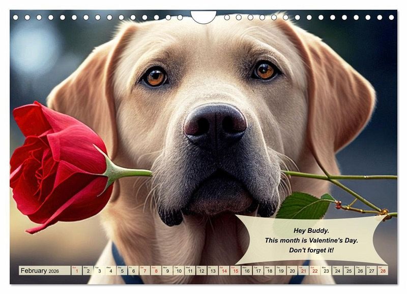 Dive into a year of laughter and joy with our Great Fun for Labrador Lovers annual calendar. Each month unveils a delightful scene featuring adorable Labrador dogs in the most hilarious positions, paired with witty and humorous quotes that capture the essence of Labrador charm. Perfect for brightening up any room, this AI generated calendar is a must have for Labrador enthusiasts and animal lovers alike. Whether you're looking for the ideal gift for a Labrador owner or just want to spread some cheer, this calendar promises to bring a smile to everyone's face. Get ready to enjoy a year filled with laughter, love, and Labradors.