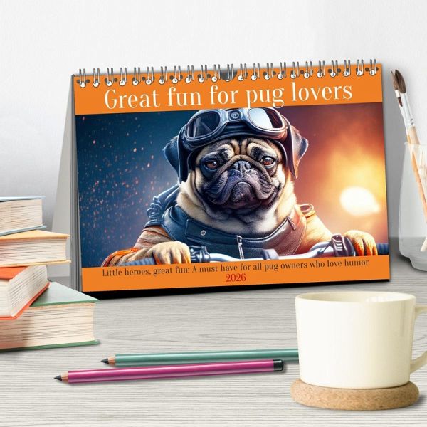 QUALITY - High-quality photo calendar with 12 beautiful images on light-resistant paper, robust spiral binding.SUSTAINABLE - Significant waste reduction due to print-on-demand production, environmentally friendly FSC-certified paper, produced locally, climate-conscious logistical processes.PERFECT GIFT - calendars for friends and family, for children, all ages and all occasions, from Christmas to birthdays and everything in between.LOTS OF CHOICE - Wall calendars in different sizes (DIN A4 and DIN A3), for any topic and personal taste, featuring photography, painting and illustrations.A must have for all pug owners who love humor von Autor(in): Peter Rübsamen